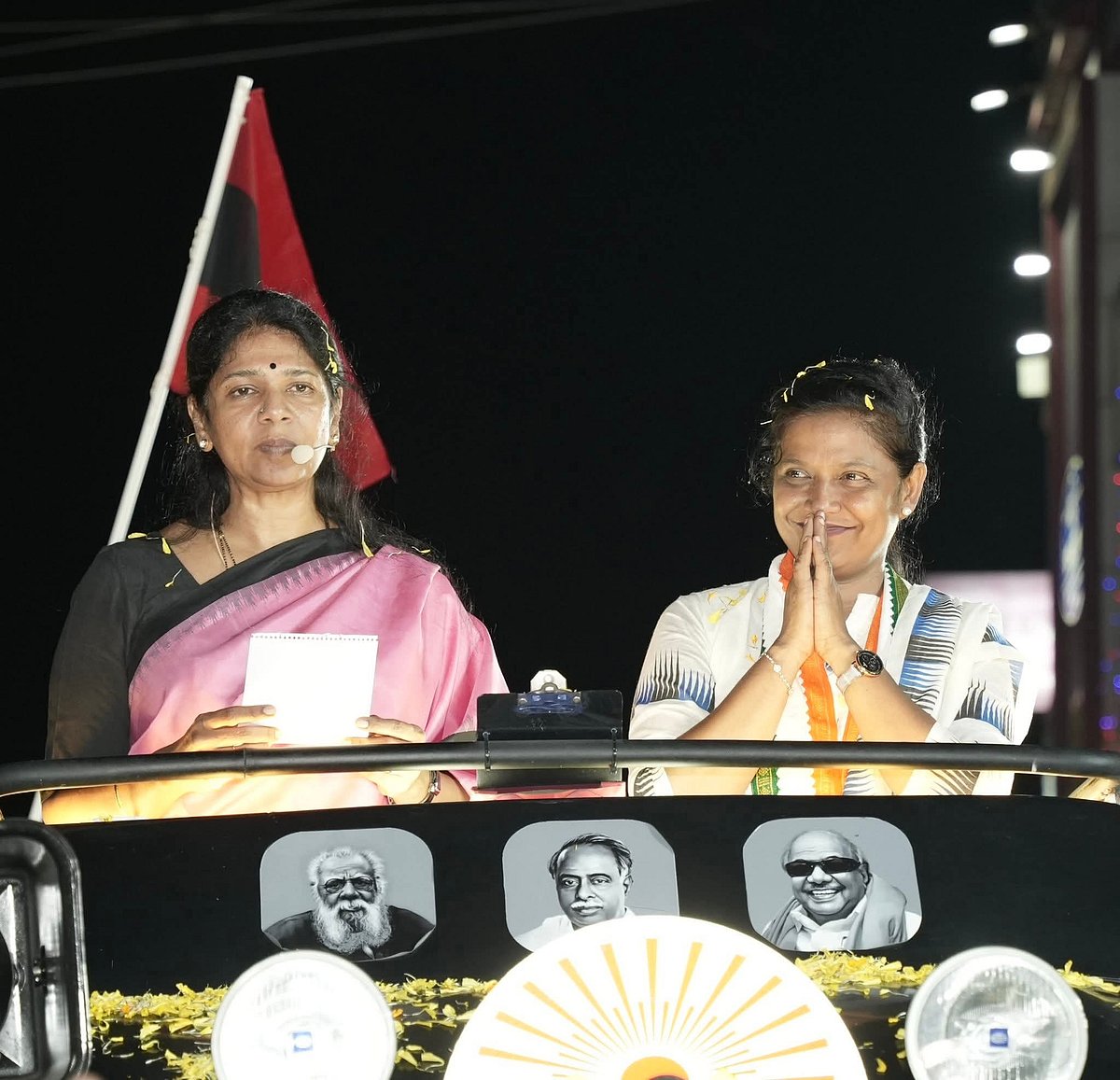 கன்னியாகுமரி தொகுதி தி.மு.க வேட்பாளர் மகேஷ், நாகர்கோவில் தி.மு.க வேட்பாளர் ஆஸ்டின், குளச்சல் தொகுதி காங்கிரஸ் வேட்பாளர் தாரகை கத்பர்ட் உள்ளிட்டோரை ஆதரித்து நாடாளுமன்ற உறுப்பினர் கனிமொழி பிரசாரம் மேற்கொண்டார். குளச்சலில் கனிமொழி எம்.பி பேசுகையில், ​”குளச்சல் தொகுதி காங்கிரஸ் வேட்பாளர் தாரகை கத்பர்ட் மக்களுக்காக போராடக்கூடிய வேட்பாளர். நம்முடைய முதல்வர் மக்களுக்கு தந்திருக்கக்கூடிய வாக்குறுதிகளை எல்லாம் நிறைவேற்றி தந்திருக்கிறார். அந்த உரிமையோடு வாக்கு கேட்கிறோம். ​அந்த உரிமையோடு தான் இங்கே இருக்கக்கூடிய சகோதரிகள் இந்த கூட்டத்திலே கலந்து கொண்டு மறுபடியும் தமிழ்நாட்டில் நம்முடைய திராவிட மாடல் ஆட்சியை முத்துவேல் கருணாநிதி ஸ்டாலின் தலைமையிலே கொண்டு வந்திருக்கிறீர்கள். அதே நேரத்திலே சகோதரிகளுக்குத் தனியாகத் தந்த மகளிர் உரிமைத் தொகை 1000 ரூபாயை இப்பொழுது ஒரு கோடியே 15 லட்சம் பேருக்குத் தந்திருக்கிறார் முதல்வர். ஆட்சிப் பொறுப்பேற்றவுடன் அது 1000-லிருந்து 2000-ஆக உயர்த்தி வழங்கப்படும். நம்முடைய இளைஞர்களுக்கும், இளம்பெண்களுக்கும் 35 லட்சம் மாணவர்களுக்கு அடுத்த 5 வருடத்தில் லேப்டாப் வழங்கப்படும். அரசுப் பள்ளியிலிருந்து கல்லூரிக்குச் செல்லக்கூடிய இளைஞர்களுக்கு, இளம்பெண்களுக்குப் புதுமைப் பெண் மற்றும் தமிழ்ப் புதல்வன் திட்டத்தின் வாயிலாக 1000 ரூபாய் வழங்கப்படுகிறது. மறுபடியும் ஆட்சிக்கு வந்தவுடனே அது 1500 ரூபாயாக உயர்த்தி வழங்கப்படும். யாருக்கு எது தேவை என்று சிந்தித்துச் செயல்பட்டுக் கொண்டிருக்கக்கூடிய ஆட்சி திராவிட முன்னேற்றக் கழக ஆட்சி. முதியோர்கள், வயோதிகர்கள், மாற்றுத்திறனாளிகள் போன்றவர்களுக்கு வீடு தேடிப் போய் ரேஷன் பொருட்களைத் தரக்கூடிய தாயுமானவர் திட்டத்தைத் தந்திருக்கிறோம். ஒரு வீடு கூட தமிழ்நாட்டிலே திராவிட முன்னேற்றக் கழக ஆட்சியால் பயன்பெறாத ஒரு வீடு இருக்கு எனச் சொல்ல முடியாத அளவிற்கு எல்லோருக்குமான ஆட்சியாக நடைபெற்றுக் கொண்டிருக்கிறது.
