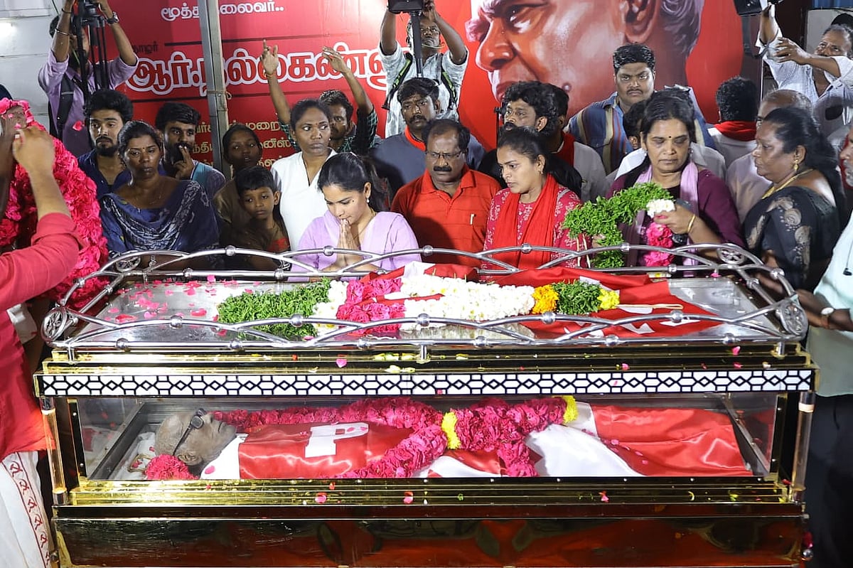 Tamil News `தோழருக்கு செவ்வணக்கம்' – நல்லகண்ணு உடலுக்கு அரசியல் தலைவர்கள் அஞ்சலி! – Photo Album By: admin Date: February 25, 2026 Source link Previous articleநல்லகண்ணு: 'உரிமைக்காகப் போராடிய அவரது சேவை என்றும் நினைவில் நிற்கும்'- அரசியல் தலைவர்கள் இரங்கல்Next articleநல்லகண்ணு மறைவு: "அரசியல்வாதிகளுக்கு பாடமாக விளங்கியவர்.!"- ஸ்டாலின் நேரில் அஞ்சலி adminhttps://telugu.rashtrashabdam.com LEAVE A REPLY Cancel reply Comment: Please enter your comment! Name:* Please enter your name here Email:* You have entered an incorrect email address! Please enter your email address here Website: Save my name, email, and website in this browser for the next time I comment. Share post: FacebookTwitterPinterestWhatsApp SubscribeI want inI've read and accept the Privacy Policy. Popular நல்லகண்ணு மறைவு: "அரசியல்வாதிகளுக்கு பாடமாக விளங்கியவர்.!"- ஸ்டாலின் நேரில் அஞ்சலி நல்லகண்ணு: 'உரிமைக்காகப் போராடிய அவரது சேவை என்றும் நினைவில் நிற்கும்'- அரசியல் தலைவர்கள் இரங்கல் `அடுத்த நகர்வுக்கு தயாராகும் காங்கிரஸ்' – ராகுல் நடத்த போகும் பேரணி தோழர் நல்லகண்ணு : தமிழ்ச் சமூக பாட்டாளி வர்க்கத்தின் நூற்றாண்டு ஒளி! அறம்… நேர்மை.. நம்பிக்கை! எளிய மக்களின் `தோழர்' நல்லகண்ணு | வாழ்க்கை பயணம் More like thisRelated நல்லகண்ணு மறைவு: "அரசியல்வாதிகளுக்கு பாடமாக விளங்கியவர்.!"- ஸ்டாலின் நேரில் அஞ்சலி admin - February 25, 2026 கம்யூனிஸ்ட் கட்சியின் மூத்த தலைவர் நல்லகண்ணு (101) உடல் நலக்குறைவால் இன்று... நல்லகண்ணு: 'உரிமைக்காகப் போராடிய அவரது சேவை என்றும் நினைவில் நிற்கும்'- அரசியல் தலைவர்கள் இரங்கல் admin - February 25, 2026 இந்திய அரசியலில் மிக மூத்த தலைவர்களில் ஒருவரும் சுதந்திரப் போராட்ட வீரருமான... `அடுத்த நகர்வுக்கு தயாராகும் காங்கிரஸ்' – ராகுல் நடத்த போகும் பேரணி admin - February 25, 2026 தி.மு.க-வுடனான கூட்டணியை இறுதி செய்வதில் காங்கிரஸ் கட்சி பல்வேறு சிக்கல்களை சந்தித்து... தோழர் நல்லகண்ணு : தமிழ்ச் சமூக பாட்டாளி வர்க்கத்தின் நூற்றாண்டு ஒளி! admin - February 25, 2026 'அதிகாரம் கொடியது!'இந்திய கம்யூனிஸ்ட் கட்சி தடை செய்யப்பட்டிருந்த காலம் அது. நல்லகண்ணு...